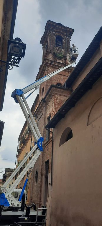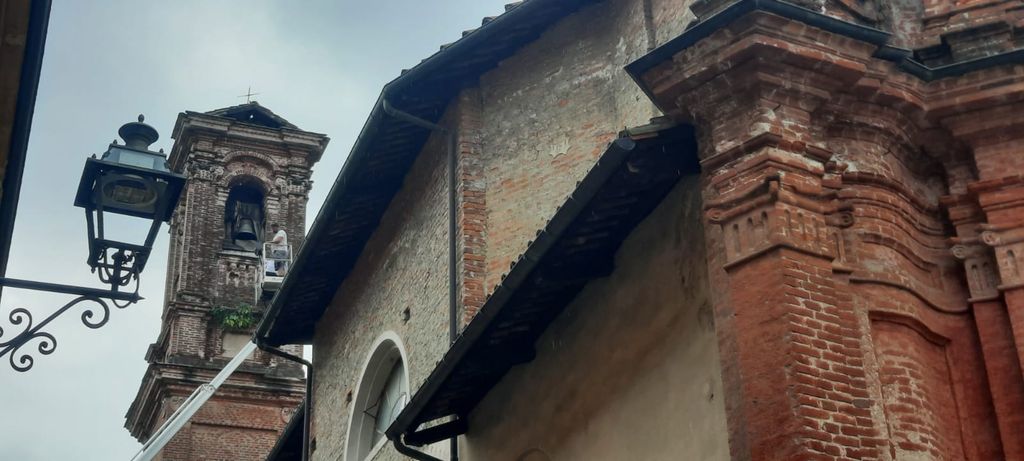 E’ in corso mentre scriviamo una prima verifica dei danni provocati dal fulmine che, intorno alle 8 di questa mattina, accompagnato da un fragoroso boato, si è abbattuto sul campanile della chiesa della Croce Nera, storico edificio religioso di piazzetta San Nicola, nel cuore del centro storico saluzzese.
