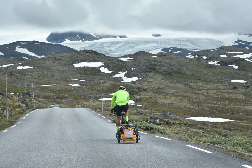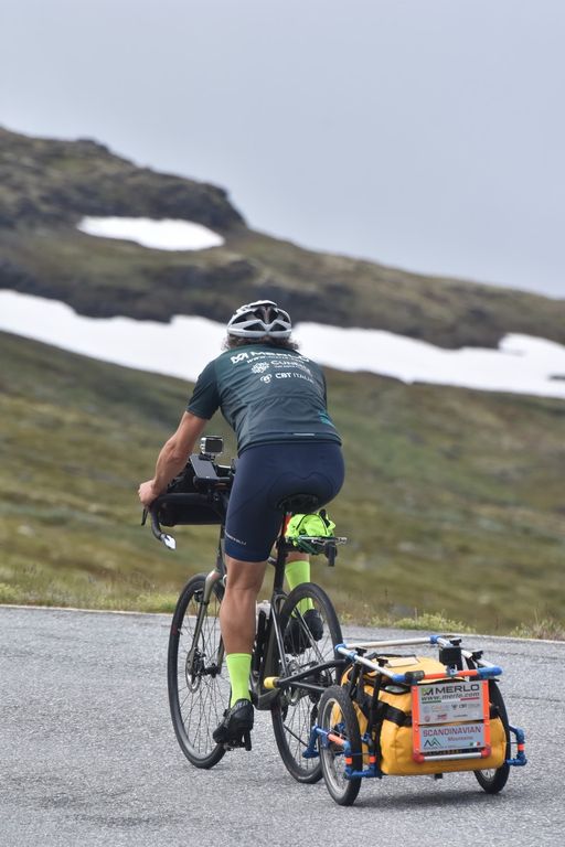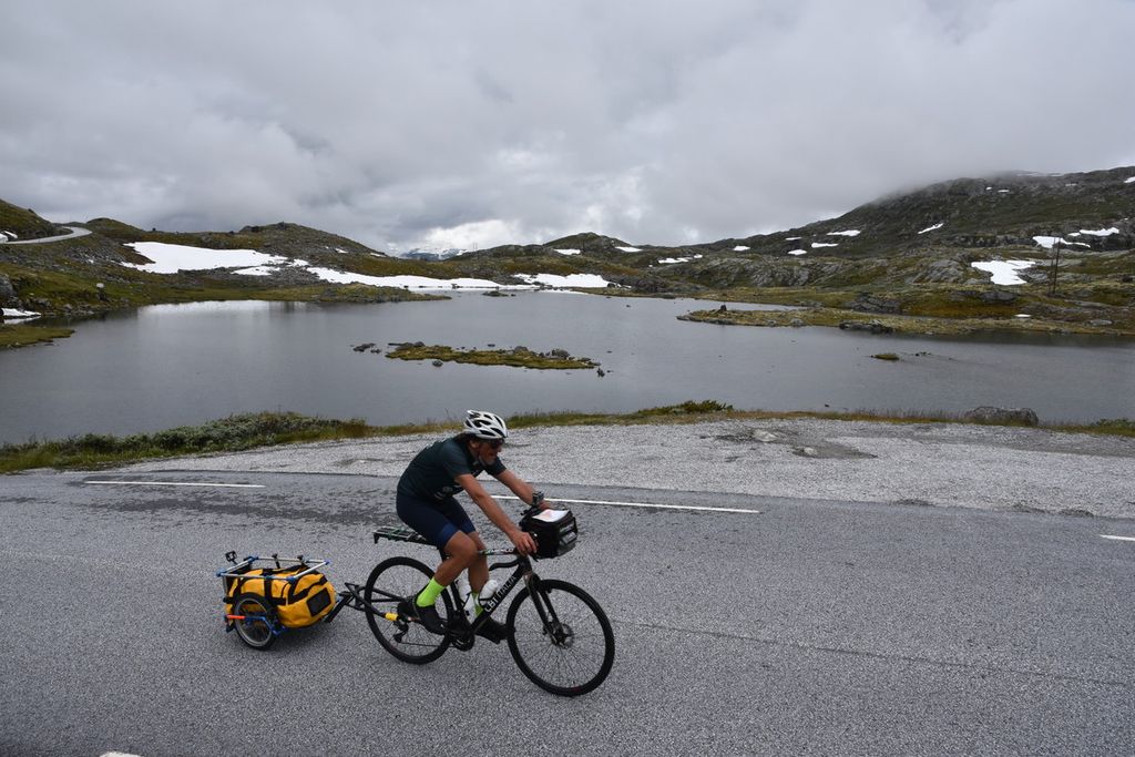 Poi è stata la volta della strada più alta del Nord Europa, la Sognefjellet. Una salita molto lunga con una pendenza media del 9% e punte al 15% che ha portato Giovanni a raggiungere i 1397 metri.