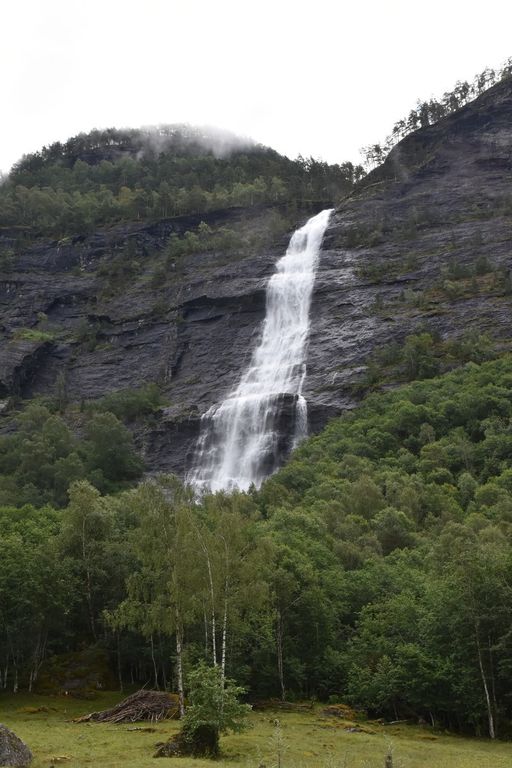 Prima di inerpicarsi sulle pendenze di questa lunga salita, Giovanni ha costeggiato per parecchi km. il Sognefjord, il fiordo più lungo della Norvegia nonché il secondo più lungo del mondo dopo quello in Groenlandia. 204 km. di una natura straordinaria e di una strada spettacolare con impetuose cascate tra le più imponenti d’Europa che si gettano per centinaia di metri nelle acque dei fiordi.
