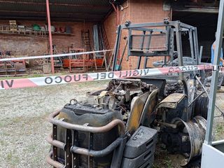 La struttura ospitava tra gli altri mezzi due trattrici, un carro semovente per la raccolta frutta adatto ai filari in pendenza, una trincia, un muletto e minuteria varia. Tutto andato interamente distrutto e perso nell'incendio.