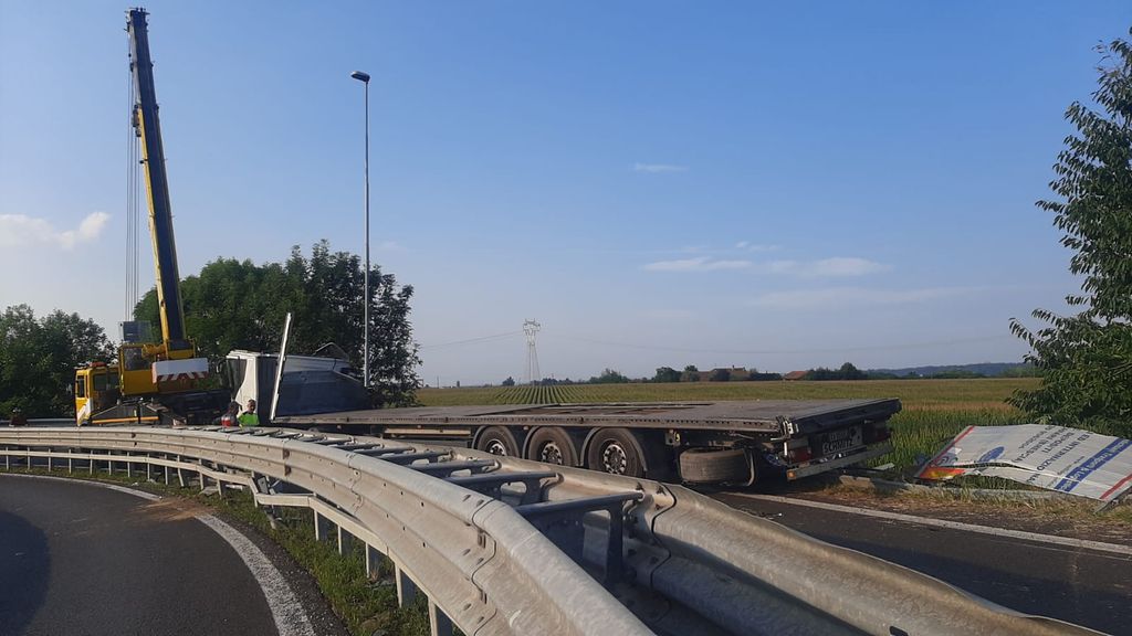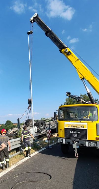 Tangenziale di Fossano chiusa in entrambi i sensi di marcia per la rimozione del camion ribaltato