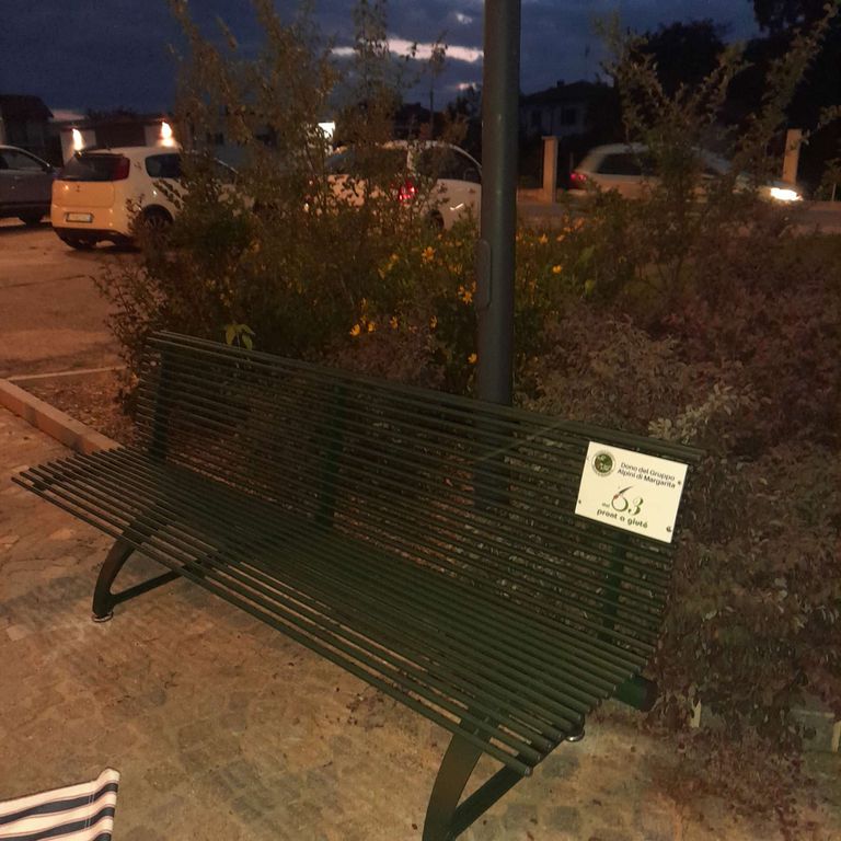 In particolare una di colore viola, dedicata alla “gentilezza”, collocata nel parco giochi, mentre quella di colore “verde alpino” dedicata agli Alpini margaritesi, posta davanti all’ “aiuola alpina”.