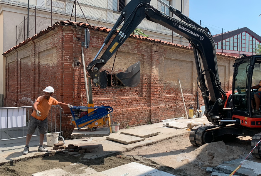 Sono in esecuzione le operazioni di rifacimento della pavimentazione nel vicolo di accesso al parcheggio del PalaFerrua, in corso Roma 62: il progetto prevede il proseguimento del passaggio pedonale in pietra in corrispondenza dell’attraversamento ed il rifacimento dell'acciottolato che conduce al parcheggio interno.