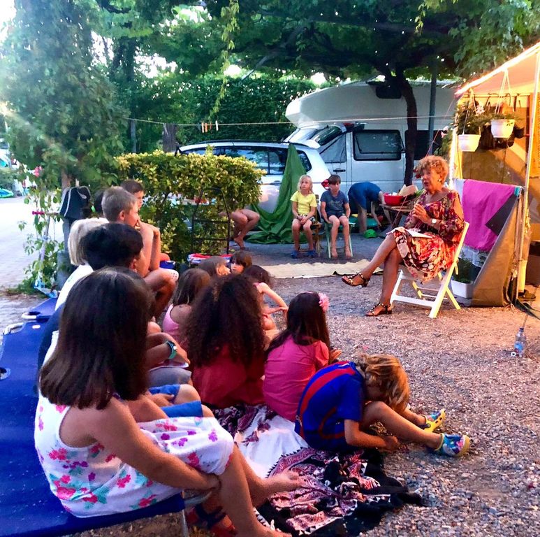 Non racconta solo a Cuneo o nel reparto di Pediatria dell'ospedale Santa Croce, ma anche presso il Camping Lino a Cervo, nell'imperiese. Dove passa qualche settimana ogni estate.