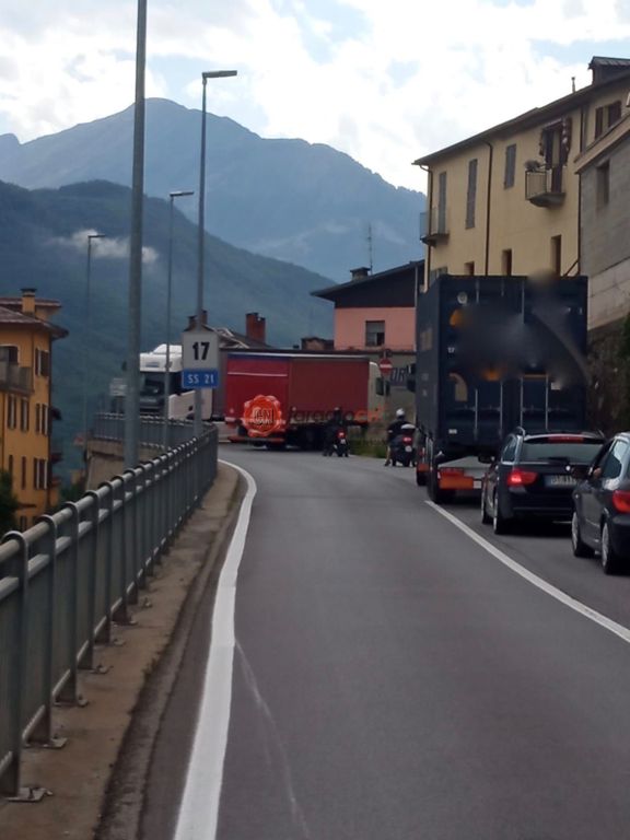 Questo consente il passaggio a senso unico alternato dei tir, evitando che si incrocino nel budello del paese, con le conseguenze che da anni riportiamo: viabilità paralizzata, perché in contemporanea non ci passano.