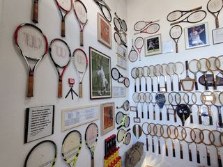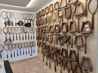 Il museo è suddiviso in zone, a partire da quella in cui sono esposti i due pezzi più antichi: una racchetta da Real Tennis del 1820, quando si giocava nelle sale dei castelli inglesi e la Hazell’s Streamline di Bunny Austin del 1937. Accanto fanno bella mostra decine di racchette in legno fra cui una trentina di bellissime Photo Decal Wood Rackets con i volti dei giocatori impressi sul cuore della racchetta. Tra tutte, iconica, c’è anche la famosa WIP di Adriano Panatta.
