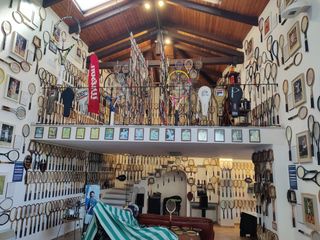 “In effetti avevo questo grande spazio con il soppalco e per qualche tempo nel mio negozio di articoli sportivi a Torino avevo preso l’abitudine di esporre vecchie racchette che avevano un loro storia, prestate da clienti o avute per vie traverse. Dopo un po’ ho pensato che potevo collezionarle e pian piano, in una ventina d’anni, ho trovato loro una collocazione “storica”, cercando di raccontare la straordinaria storia del tennis attraverso di loro”.