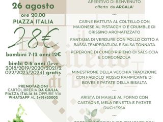 La cena prenderà il via alle ore 20 in piazza Italia e costerà 28 euro (bambini 7-12 anni euro 12 e mentre per i bimbi dalla leva del 2018 alla 2024 sarà gratuito).