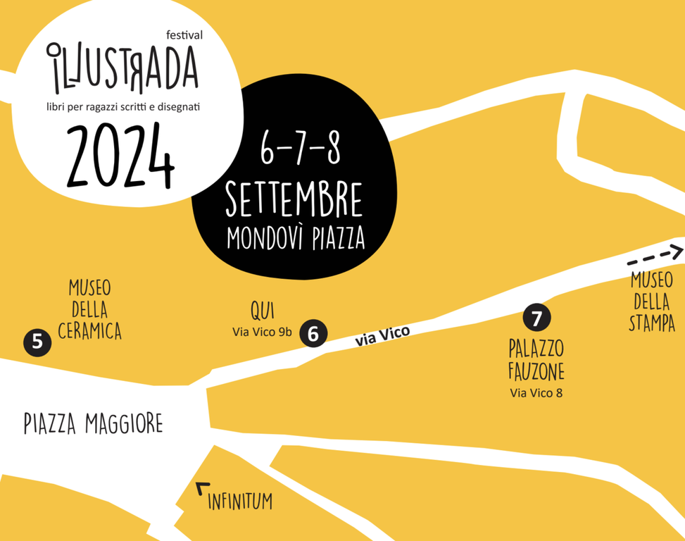 Venerdì 6 settembre a partire dalle ore 17 saranno inaugurate le mostre di Altan, presso il Museo della Ceramica in Piazza Maggiore n.1, e di Simone Rea, presso l’Academia Montis Regalis, in via Francesco Gallo. Sala Ghislieri ospiterà la mostra di Federico Appel, realizzata in collaborazione con il Premio Gigante delle Langhe, di cui l’illustratore è il vincitore 2024, e la mostra di Anna Mosca, l’illustratrice vincitrice della prima edizione del concorso “Il mio primo libro di figure” promosso da Illustrada Associazione Culturale, in collaborazione con Gribaudo e l’Associazione Autori di Immagini..