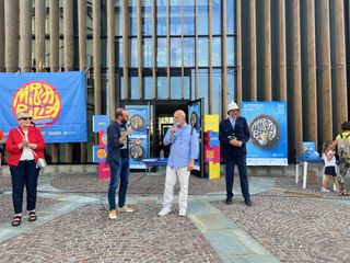 Il momento del taglio del nastro e le prime parole di Fabrizio Gavosto: