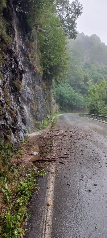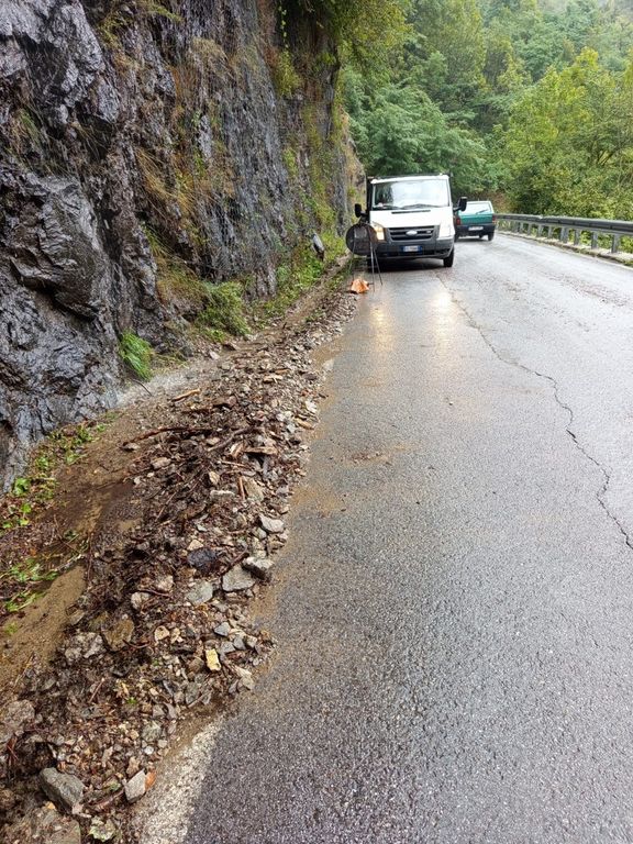 Qui, probabilmente a causa del forte temporale verificatosi in zona, pietre e altri materiali si sono depositati sulla carreggiata, che attualmente è parzialmente ostruita. La frana non ha coinvolto persone né mezzi di passaggio.