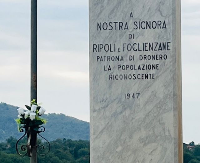“A Nostra Signora di Ripoli e Foglienzane patrona di Dronero la popolazione riconoscente”.