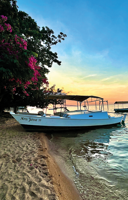 Nei dintorni, le strade sterrate sono protagoniste di lunghe camminate tra piccoli villaggi e piantagioni di mango; la polvere sollevata dal passo si mescola con l'odore della terra secca e del legno bruciato. Le case sono semplici, costruite con mattoni di fango e tetti di paglia, e i bambini corrono incontro ai rarissimi viaggiatori con grandi sorrisi e speranze contagiose. Proseguendo, il paesaggio cambia leggermente con occasionali scorci sul lago che appare e scompare tra gli alberi. Lungo il cammino capita di vedere piccoli mercati locali improvvisati, dove le donne vendono frutta fresca, verdure e pesce essiccato, il tutto esposto in cesti intrecciati con cura. L'atmosfera è vivace, ma rilassata, e i colori dei prodotti si mescolano con quelli dei vestiti tradizionali, creando un quadro vivente. Tornando verso il Lodge, il sole inizia a calare tingendo il tramonto di rosso e arancio; la sera porta con sé una brezza leggera mentre una musica inizia a risuonare, in lontananza, segno che si preannuncia una notte di festa.