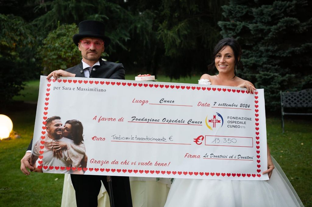 Una bellissima storia di amore e generosità: è quella di Sara e Massimiliano, coppia di Piasco che sabato 7 settembre ha detto "sì". Un sì speciale, che ha coinvolto più di 100 donatori e ha consentito di raccogliere quasi 14 mila mila euro da donare, tramite la Fondazione Ospedale Cuneo onlus, al reparto di Oncologia del Santa Croce e Carle diretto dal dottor Gianmauro Numico.