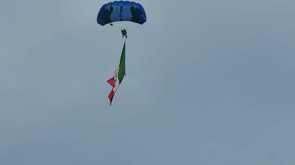 Il cielo di Imperia alle 18 in punto si colora di verde, di bianco e di rosso. Calato dall’alto con il lancio dall'elicottero SH 90 decollato da MariLuni (La Spezia) il vessillo tricolore, quello di Imperia e del Gruppo operativo incursori della Marina Militare fa battere il cuore e regala emozioni. Ma quella degli incursori non è solo uno spettacolo da togliere il fiato è stata la cerimonia di apertura dell'edizione numero 25 del Raduno delle Vele d'Epoca di Imperia.