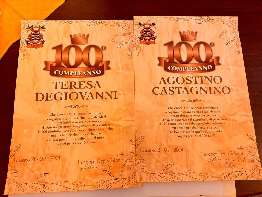 Giornata speciale a Fossano per i compleanni di Agostino Castagnino e Teresa Degiovanni, che quest'anno compiono 100 anni.