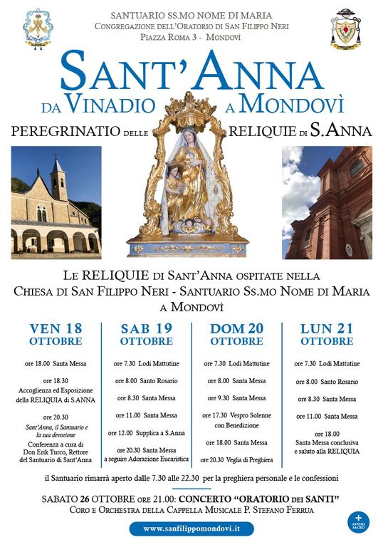 Importante appuntamento al santuario del Santissimo Nome di Maria - Chiesa di San Filippo Neri a Mondovì Breo che ospiterà le reliquie di Sant'Anna.
