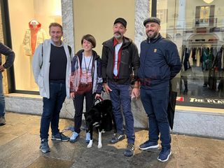 Benedetti dalla pioggia e salutati da tante persone, questa mattina 3 ottobre sono partiti, a piedi, Eva Garelli (operatrice antiviolenza della cooperativa Fiordaliso) e Pietro Vertamy (fotografo ed esperto di cammini), accompagnati da Tumpi, fedele compagno di viaggio a quattro zampe, stamattina particolarmente agitato, soprattutto per gli applausi.