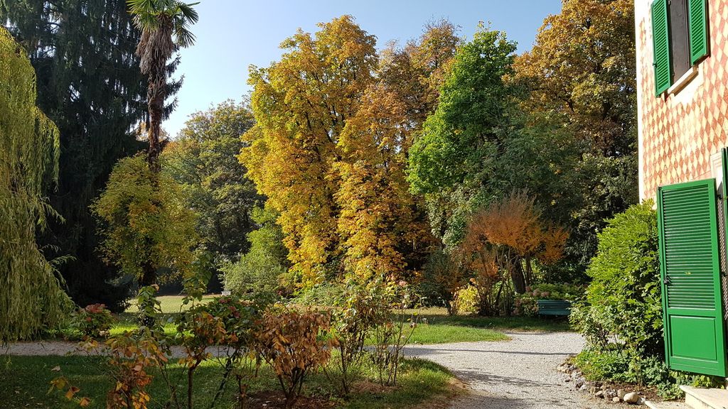 La casa e il parco risalgono alla seconda metà del XVII secolo. Il giardino ha le caratteristiche del giardino “all’italiana” nella prima parte. Poi, secondo la moda francese, partono tre lunghi viali di carpini potati in modo da creare una verde muraglia. Infine il parco “all’inglese”.