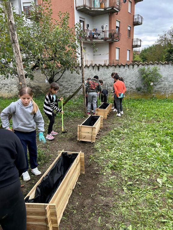 Nella mattinata di giovedì 10 ottobre i ragazzi, sotto la guida dei volontari e delle loro insegnanti, hanno estirpato erbacce, livellato il terreno, misurato distanze e posizionato vasche per la semina, ripulito aiuole dalle erbacce e individuato un luogo per il compostaggio.
