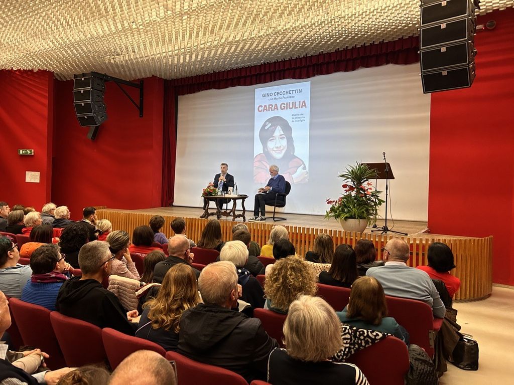 Il pubblico in piedi e un lungo riconoscente applauso di una sala gremita ha posto fine all’ora e mezza di incontro che ieri sera, domenica, ha visto Gino Cecchettin portare anche ad Alba la testimonianza di padre impegnato nella lotta contro la violenza di genere e il femminicidio, piaga senza fine che meno di un anno fa, l’11 novembre 2023, gli ha portato via la secondogenita Giulia, studentessa 22enne uccisa dal fidanzato Filippo Turetta.