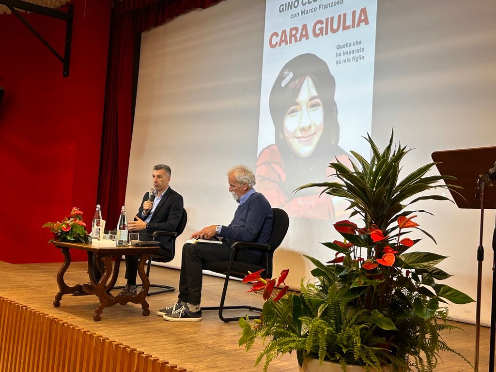 "Un libro nato per parlare a mia figlia con una lettera aperta", ha esordito Gino Cecchettin dal palco, intervistato da Nicola Conti, presentandosi come "un papà che ha voluto fare un ultimo regalo a una figlia fantastica".