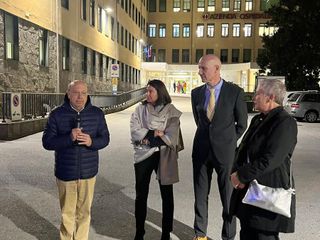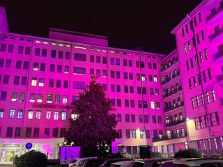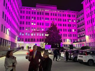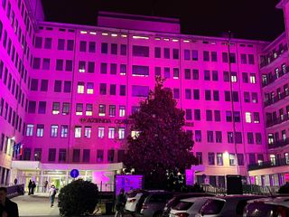 All'accensione di stasera erano presenti il direttore amministrativo Giorgio Rinaldi, la sindaca di Cuneo Patrizia Manassero, la presidente della Fondazione Ospedale di Cuneo Silvia Merlo e il dottor Riccardo Bonomi, dirigente medico della Senologia Chirurgica.