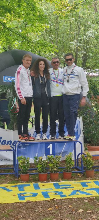 Secondo gradino del podio in 2h23' per Giuseppina Comba (Atletica Fossano SF65), rallentata purtroppo da un infortunio. Comba era alla sua seconda esperienza annuale sulla 20 km dopo aver conseguito in agosto un brillante secondo posto ai campionati mondiali di categoria che si sono disputati a Gotegorg in Svezia.