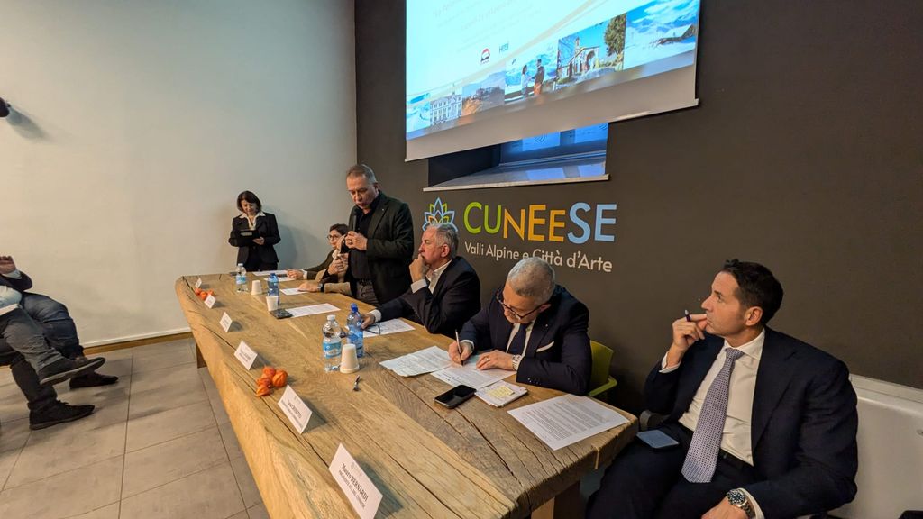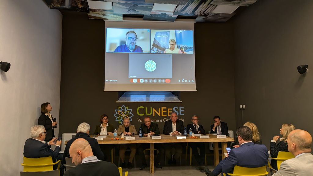 Il progetto “Ski Route Montagna Cuneese Inverno 2025” - sostenuto da Camera di commercio di Cuneo, ATL del Cuneese ed Ente Turismo Langhe Monferrato Roero - è stata presentato ieri, 21 ottobre, presso la sede ATL di Cuneo alla presenza dell’Assessore regionale Paolo Bongioanni (Commercio, Agricoltura e Cibo, Caccia e Pesca, Parchi), del Presidente della Camera di commercio di Cuneo, Luca Crosetto, del Presidente del C.d.A. di Visit Piemonte, Beppe Carlevaris; del direttore di Cuneo Airport, Anna Milanese; dei presidenti delle ATL del Cuneese e Langhe Monferrato e Roero, Mauro Bernardi e Mariano Rabino, di Danilo Turletto di ITAKA, del sindaco di Limone Piemonte, Massimo Riberi e Antonella Zanotti AD della società impianti di Limone LIFT.