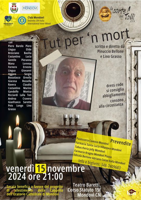 "La corte dei folli" porterà sul palco lo spettacolo "Tut per 'n mort", scritto diretto da Pinuccio Bellone e Lino Grasso.