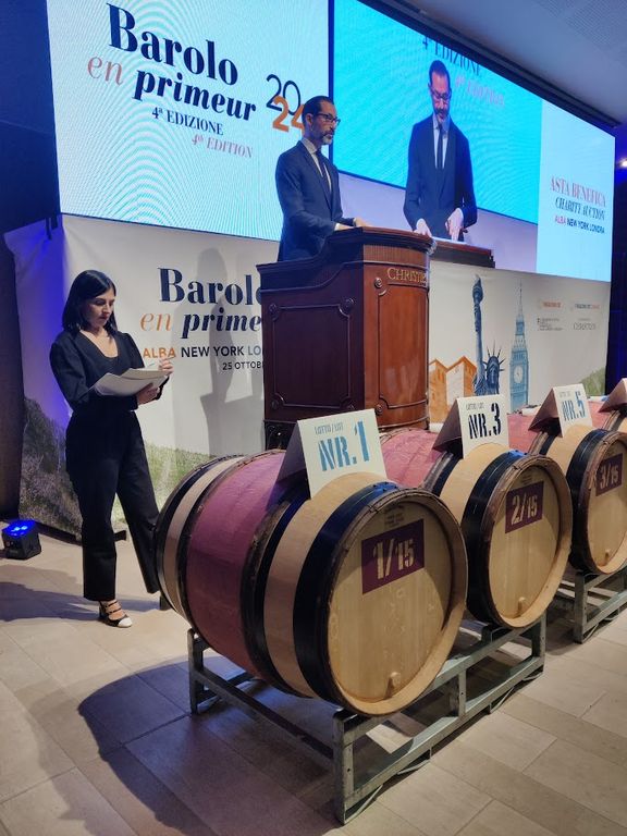Sono andati in asta Barolo e Barbaresco della vendemmia 2023: 14 barrique da circa 200 litri di Barolo Vigna Gustava, vinificate dall’enologo Donato Lanati in maniera separata, in base alla parcellizzazione della vigna, contraddistinte dal commento del critico enologico di fama mondiale e CEO di Vinous Antonio Galloni e che daranno vita ognuna a 270 bottiglie. Inoltre si devono aggiungere 10 lotti comunali, i quali hanno raccolto sotto il comune di provenienza 1.229 bottiglie donate da oltre 80 cantine del Consorzio, divise tra 938 bottiglie da 0,75 litri, 243 magnum e 48 doppie magnum, per un totale di 1.212 litri. Infine il Tonneau del Presidente da oltre 400 litri, che produrrà 540 bottiglie.