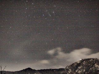 In queste settimane vedevo le foto di persone che, da altre zone, la fotografavano con facilità, mentre qui eravamo immersi nel maltempo, che ha oscurato tutta la tutta la fase piena dell'evento. Le foto che riporto qui sono scatti al limite della visibilità, visto che questa grossa 'palla di neve' si sta allontanando dal Sole e la sua scia sta scemando poco alla volta.