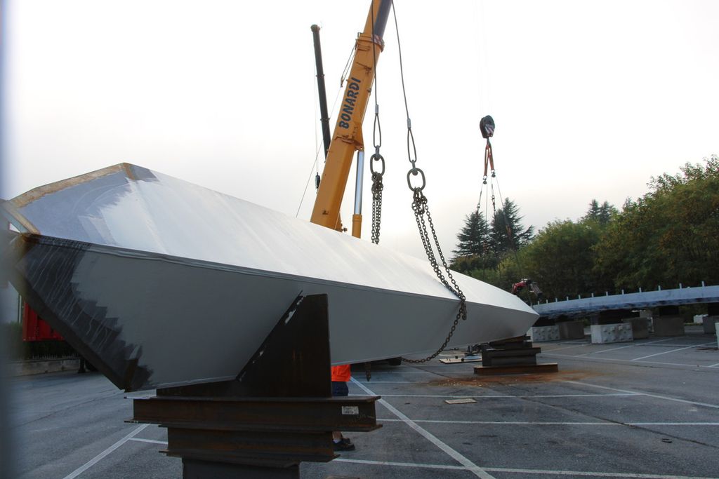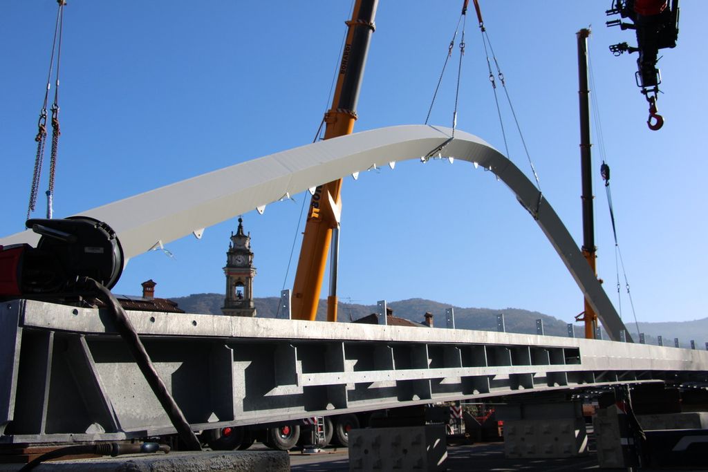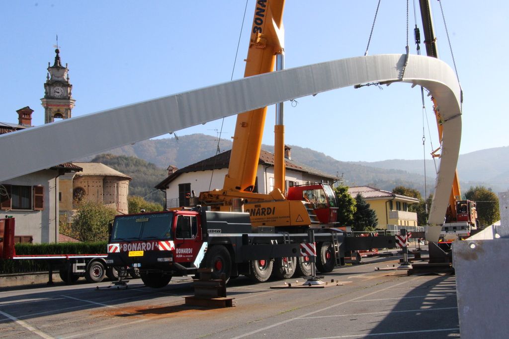 Sono iniziate questa mattina presto, mercoledì 29 ottobre, le operazioni per l’installazione dell’arco della passerella pedonale che andrà a sostituire l’ex ponte Odasso a Garessio. La struttura, su progetto del designer Giorgetto Giugiaro, è stata realizzata e assemblata dalla ditta Bertero Mario srl di Santo Stefano Roero che, nel 2013, aveva già realizzato la passerella ciclopedonale sulla Dora ad Ivrea.