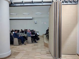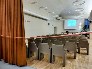 La sala, inoltre, è stata completamente resa accessibile anche nella parte del palco, eliminando le barriere architettoniche residue per favorire una fruizione inclusiva da parte di tutti i cittadini. Anche le panche laterali, elementi distintivi della sala, sono state recuperate e valorizzate attraverso una colorazione che richiama le tonalità della terra. Si è puntato alla versatilità: con sedute modulari e facilmente rimovibili, è il luogo ideale per conferenze e attività con un pubblico, come in precedenza, ma è anche un inedito spazio espositivo e per mostre temporanee.