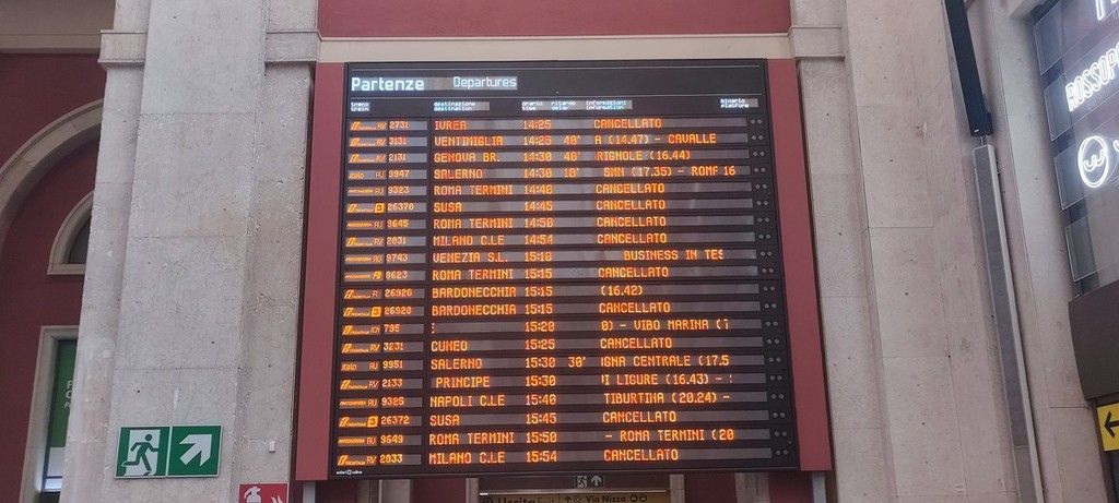 Viaggiare in treno, oggi, martedì 5 novembre, è impossibile. A causa dello sciopero indetto da tutti i sindacati a livello nazionale, in seguito all'accoltellamento subito da un capotreno ieri, sulla linea Genova - Busalla all'altezza di Rivarolo, per un controllo biglietti, la quasi totalità dei treni in partenza dalle stazioni piemontesi, a partire da Torino Porta Nuova, è cancellata.