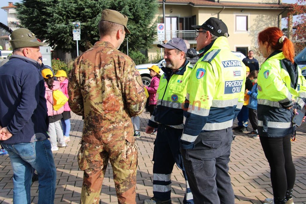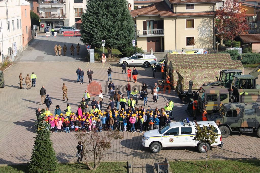 Dopo una simulazione di emergenza con l’evacuazione dei bambini della scuola primaria dell’infanzia, coordinata dei volontari della Protezione Civile, in piazza don Giovanni Rossi, si è svolto il raggruppamento dei partecipanti con la mostra dei mezzi del coordinamento provinciale della Protezione Civile e la mostra statica dei mezzi in dotazione al 32º Reggimento Guastatori di Fossano.