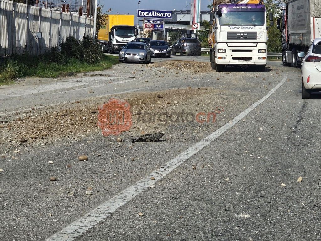 Sulla tratta non ci sono cantieri o lavori in corso, per cui si presume che il materiale sia stato perso da qualche camion.