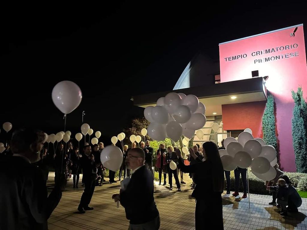 Nel giardino del Tempio crematorio di Piscina, gli ospiti hanno potuto scrivere un pensiero su un piccolo cartoncino consegnato all’ingresso e dedicato ai propri cari, legandolo poi a un palloncino e lasciandolo volare verso il cielo sulle note di Viva la Vida dei Coldplay.