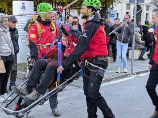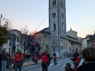 Nel pomeriggio la calata della barella dal campanile di San Dalmazzo e il taglio della torta per celebrare non solo il 70esimo del CNSAS, ma anche il 150esimo del CAI di Cuneo e il 45esimo del CAI di Borgo San Dalmazzo. A seguire l'inaugurazione della mostra "70 anni del Soccorso Alpino e Speleologico Piemontese" e, infine la chiacchierata conviviale "Il servizio di Elisoccorso ieri e oggi".