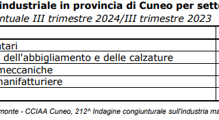 Sono questi alcuni dei risultati emersi dalla 212^ “Indagine congiunturale sull’industria manifatturiera” realizzata da Unioncamere Piemonte in collaborazione con gli Uffici studi delle Camere di commercio provinciali. La rilevazione è stata condotta nei mesi di ottobre e novembre 2024 con riferimento ai dati del periodo luglio-settembre 2024 e ha coinvolto 1.876 imprese industriali piemontesi, di cui 262 cuneesi per un totale di 12.840 addetti e un valore di oltre 4,4 miliardi di euro di fatturato.