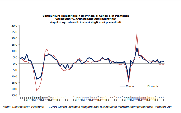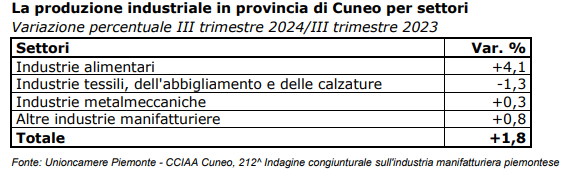 Nel III trimestre 2024 la produzione industriale cuneese ha segnato un incremento del +1,8% rispetto all’analogo periodo del 2023. Il dato della nostra provincia registra la migliore performance rispetto alle altre province piemontesi ed è apparso decisamente migliore rispetto a quanto registrato a livello regionale (-0,5%) mostrando, nel periodo in esame, dinamiche incoraggianti.