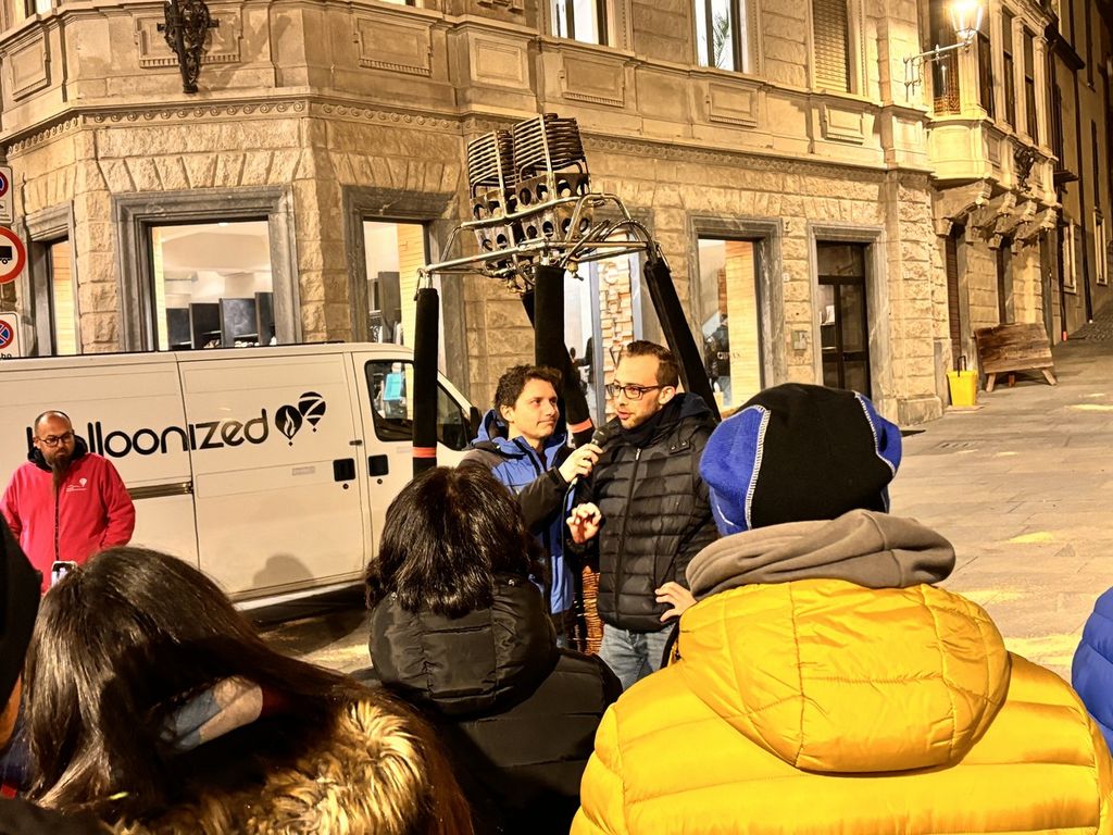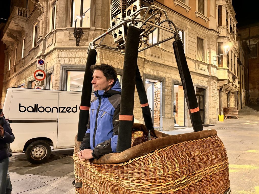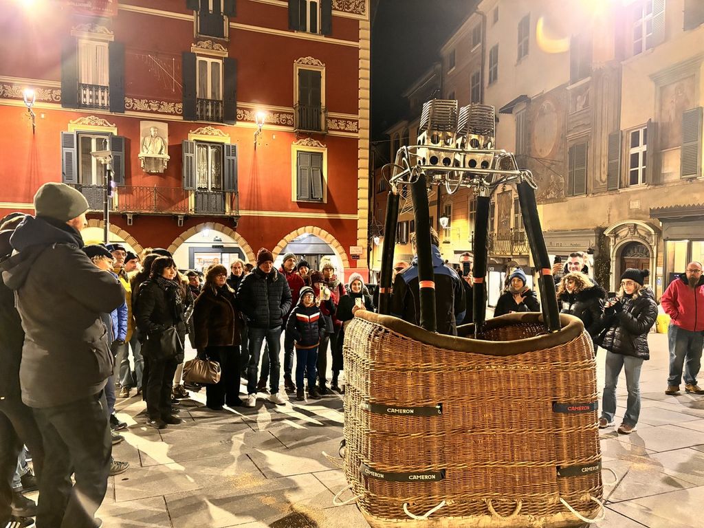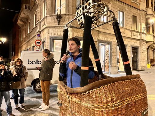 Palco d'eccezione per Abbà che è stato fatto salire a bordo di una cesta da mongolfiera da cui ha posto interessanti riflessioni - ironiche, ma molto reali - sulla situazione che vive oggi la provincia di Cuneo, con le Langhe, conosciute e attrattive per tutto il mondo e la restante parte di Granda che rimane un po' fanalino di coda.