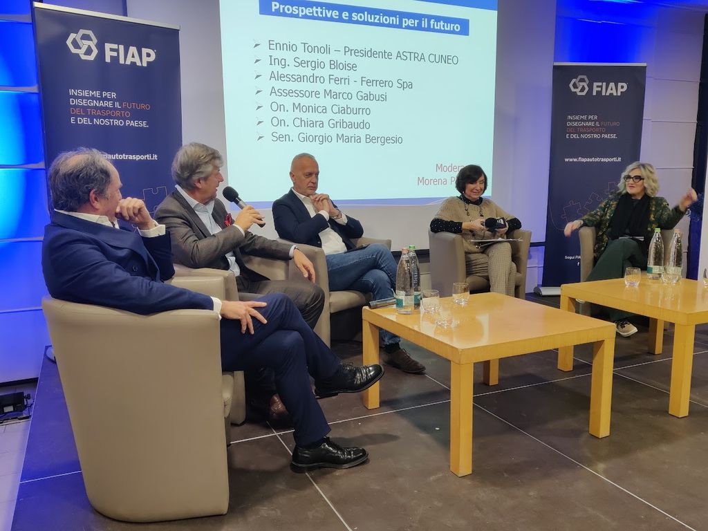 La giornalista economica, esperta di trasporti e logistica Morena Pivetti ha successivamente condotto un’interessante tavola rotonda, alla quale hanno partecipato il Presidente ASTRA CUNEO Ennio Tonoli, il Dott. Alessandro Ferri Presidente dell’Osservatorio TCR e Transport Manager Ferrero Industriale, e i parlamentari cuneesi Giorgio Bergesio, Monica Ciaburro e da remoto Chiara Gribaudo.