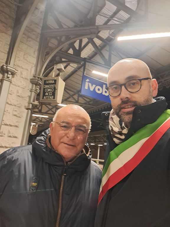 In stazione, a Fossano, il sindaco Dario Tallone. La stazione è uno snodo importante del traffico ferroviario provinciale, perché è proprio qui che si diramano i treni per Savona da un lato e per Cuneo e Limone Piemonte dall'altro, un'altra tratta ferroviaria ad alto tasso di ritardi, cancellazioni e continui disagi per i pendolari. Ad intervistare il sindaco anche una troupe della Rai regionale.