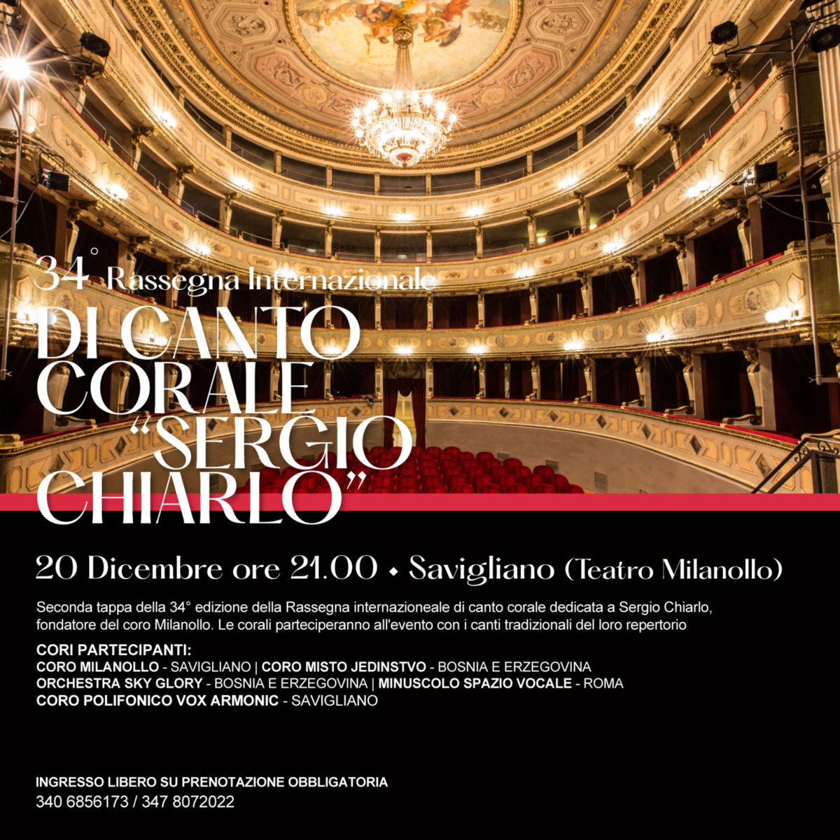 L’Associazione Corale Milanollo organizza annualmente la Rassegna Internazionale di Canto Corale, giunta alla sua XXXIV edizione. Questo evento richiama a Savigliano alcune delle più importanti formazioni vocali del panorama nazionale e internazionale, offrendo concerti gratuiti di altissimo livello, accessibili a tutti, per promuovere la cultura musicale e raggiungere un pubblico sempre più ampio.