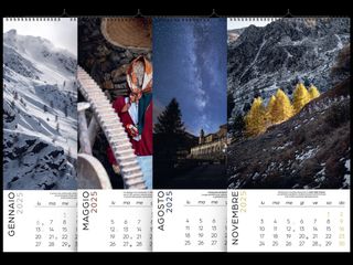 Il Calendario, in formato 26 x 49,5 cm, include una breve descrizione di ogni fotografia, l’indicazione delle fasi lunari, l’indicazione delle festività nazionali ed una pagina sul retro con le descrizioni tradotte in lingua francese ed inglese.