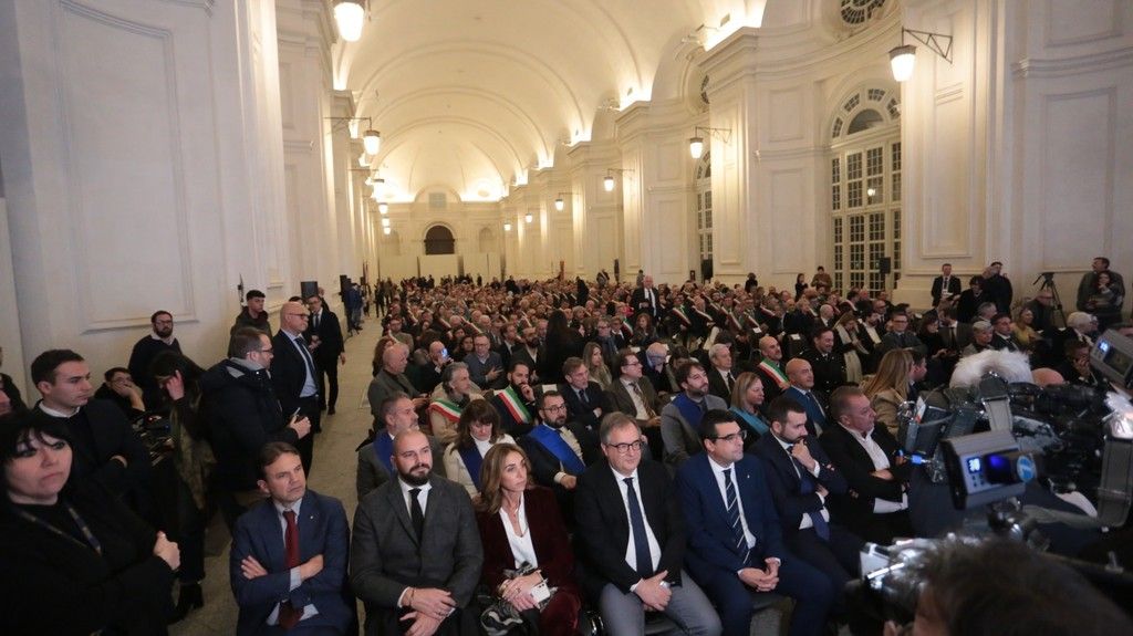Circa trecentocinquanta fasce tricolori rappresentavano i 1.180 sindaci della nostra regione nella serata di oggi, lunedì 16 dicembre, alla Reggia di Venaria, dove la Regione ed il Consiglio Regionale hanno organizzato l'evento "Piemonte è i suoi Comuni”. Una serata per presentare gli obiettivi della giunta Cirio per il 2025.