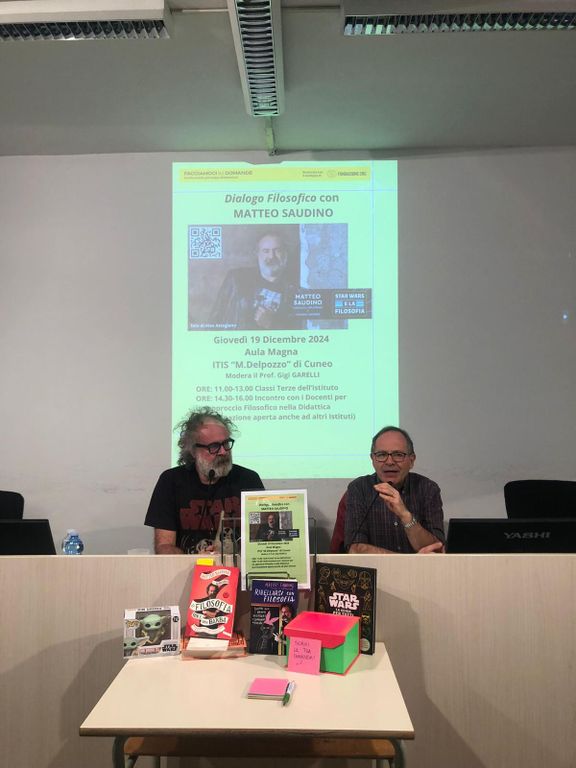 Nel pomeriggio del 19 dicembre la scuola si è aperta al territorio, consentendo a docenti degli altri istituti del cuneese di ogni ordine e grado di incontrare Matteo Saudino per una lectio magistralis sull’approccio filosofico nella didattica.