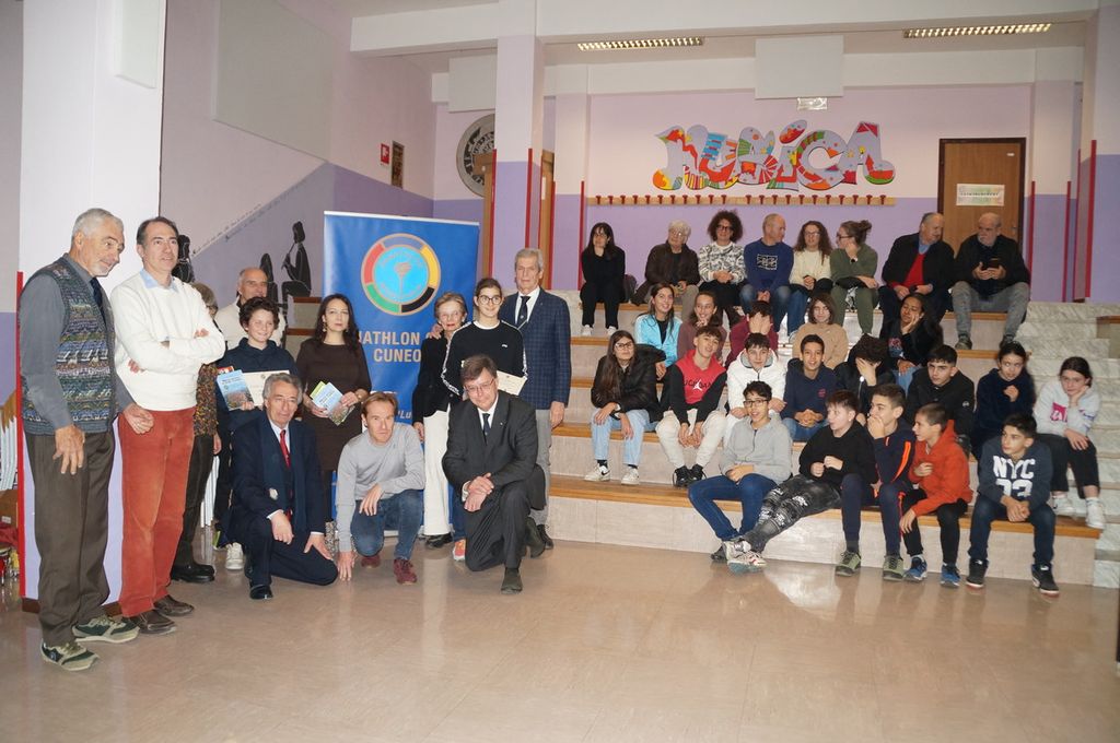 Più tardi i componenti del Panathlon si sono recati presso l’istituto comprensivo statale “A. Vassallo” di Boves, dove li attendevano il dirigente scolastico Angela Raffaele Addamo insieme al professore di educazione fisica Davide Pellegrino ed altri professori, la consigliera comunale di Boves Irene Goletto e Luca Filippi, per la consegna della borsa di studio ed il Memorial Lorenzo Tealdi a Gioele Pellegrino, accompagnato da genitori e nonni, distintosi nelle gare di sci nordico, biathlon ed atletica.