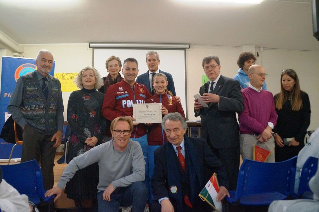 Il Presidente Giovanni Mellano ha consegnato una borsa di studio ed il Memorial Enzo Lotti a Noemi Sclerandi di Costigliole Saluzzo, tesserata con la sezione giovanile karate Torino delle Fiamme Oro, accompagnata dal padre e dal suo allenatore, assistente capo coordinatore Paolo Caracciolo, distintasi nella disciplina del karate, che l’ ha vista conquistare nel 2024 il titolo italiano a squadre.